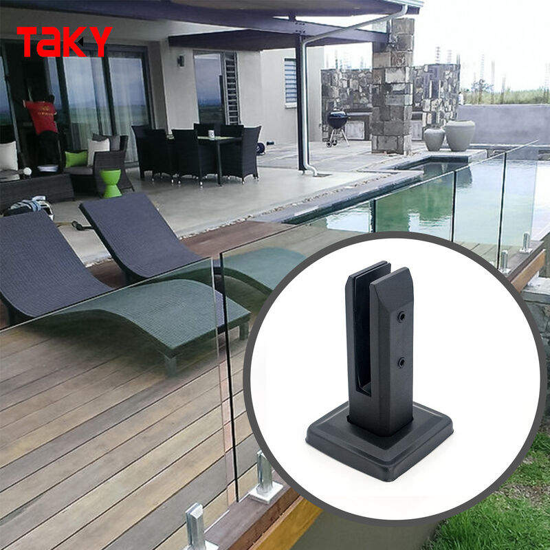 สแตนเลสคุณภาพสูงโมเดิร์นสีดำแก้วจุก CLAMP โพสต์ราวบันไดสระว่ายน้ำ